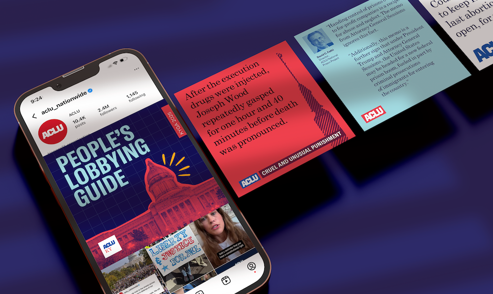 Lastly, we refreshed the ACLU’s brand identity and logo to modernize the brand — using layered images, headlines, and graphics to evoke a feeling of collective joy, energy, and diverse perspectives coming together as one.