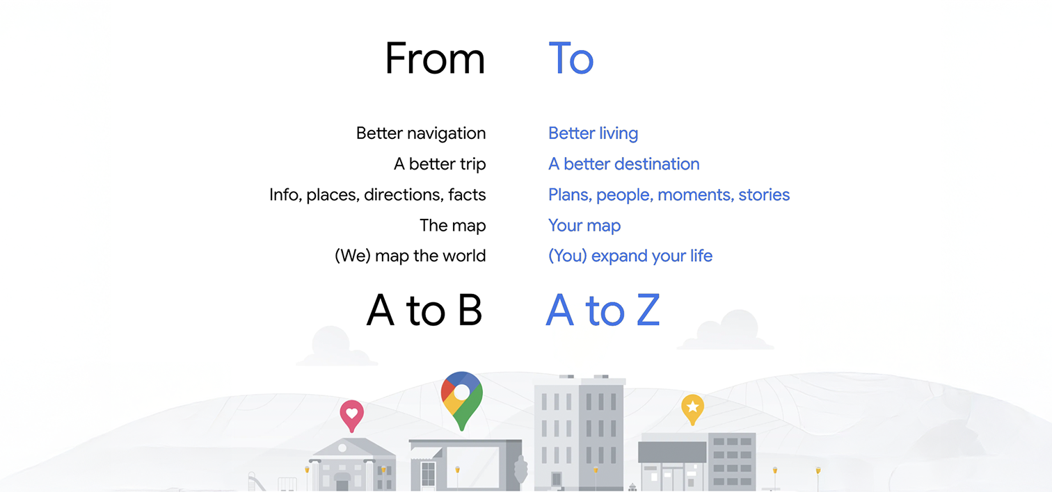 Google was transforming Maps from a mere mapping utility into a planning tool. But people’s behaviors around Google Maps were deeply ingrained and focused strictly on getting from A to B. They turned to other apps to choose their destinations and optimize their experiences.